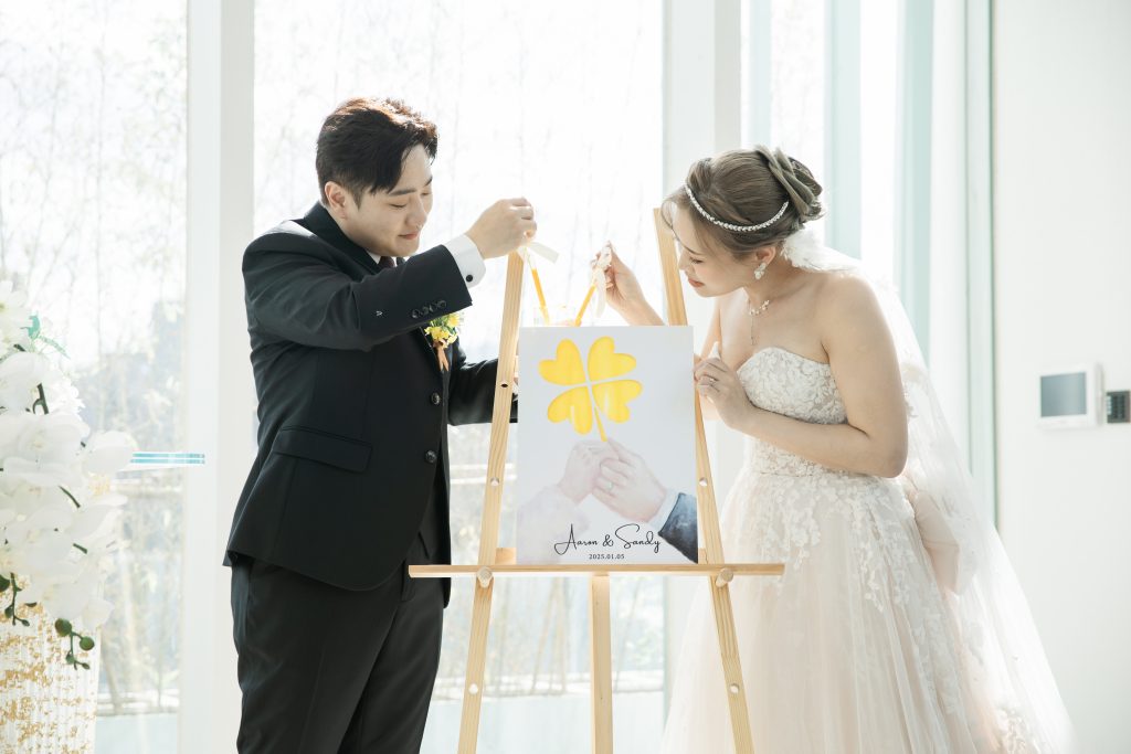 兩人於證婚後共同倒下顏料,逐漸顯現出四葉幸運草圖像,象徵他們把累積一生的運氣都用來遇見彼此,未來將攜手一起讓人生越來越美好。