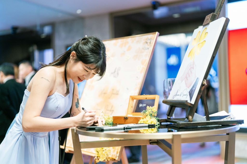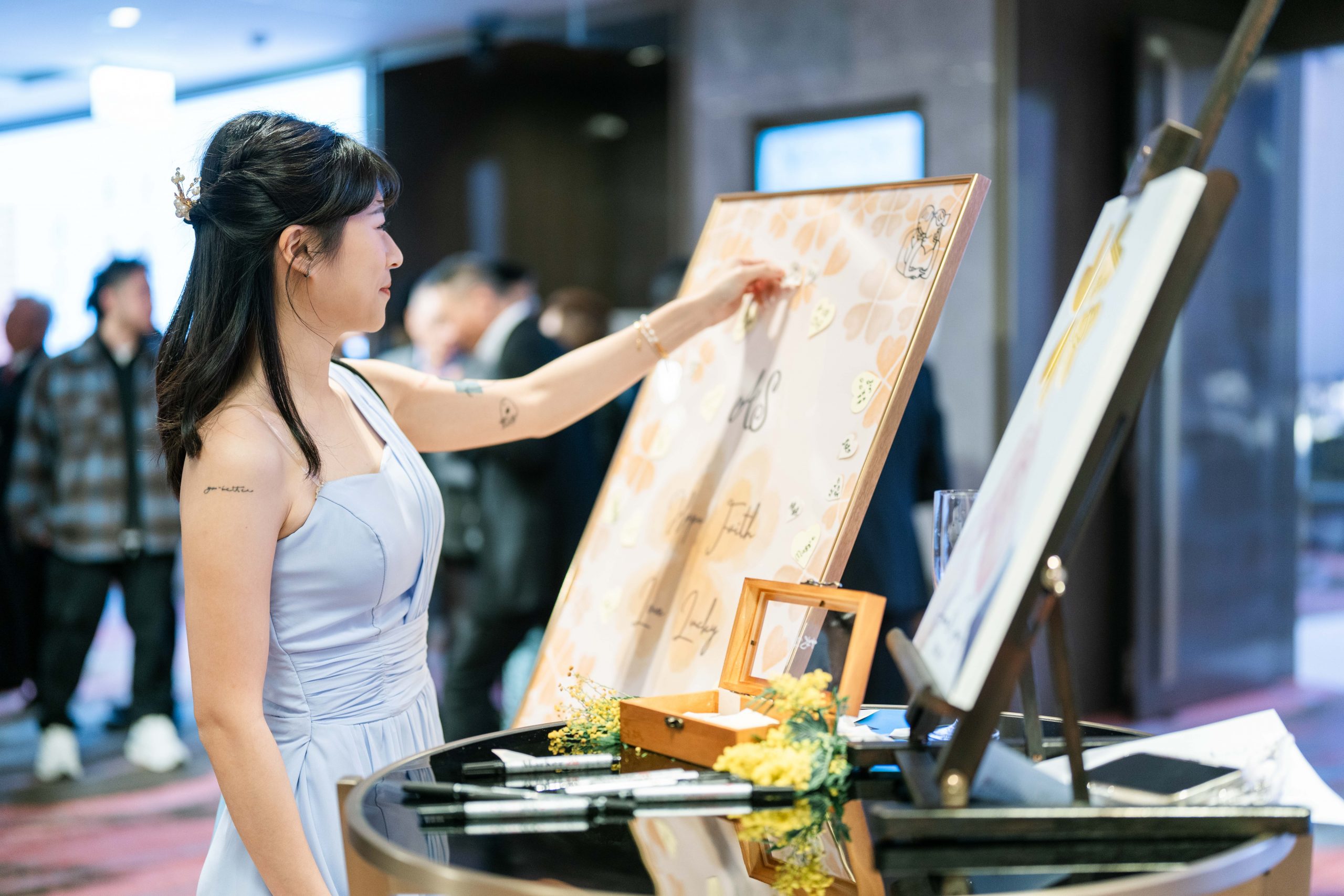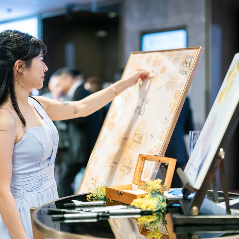 賓客在愛心造型葉片寫下祝福,