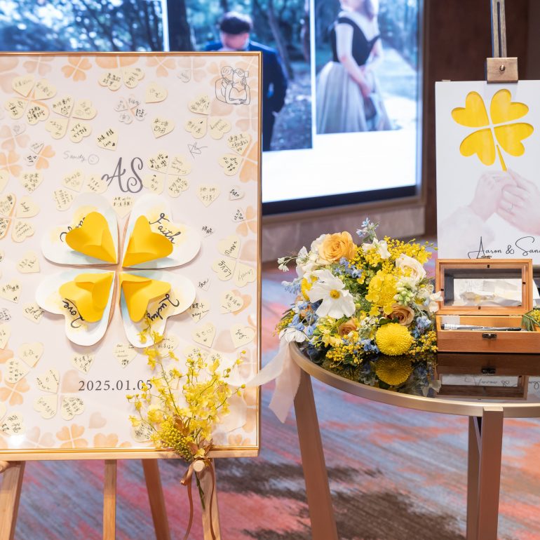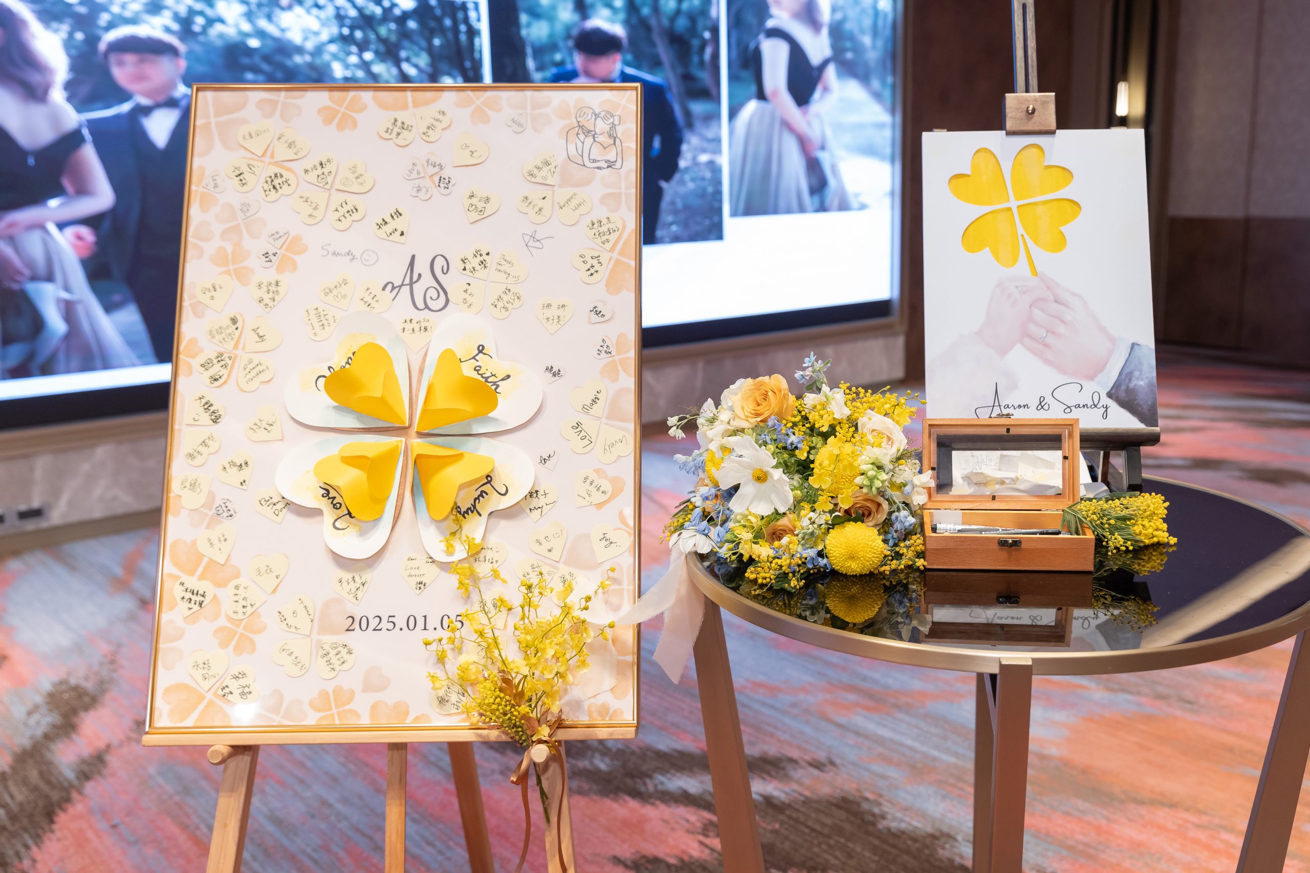 最浪漫的不是無盡的永遠,而是我剛好遇見你,恰巧這輩子夠長,可以一直愛你。用四葉草象徵唯一的幸運,用每一位賓客的參與,構築出屬於兩人的命運證明。
