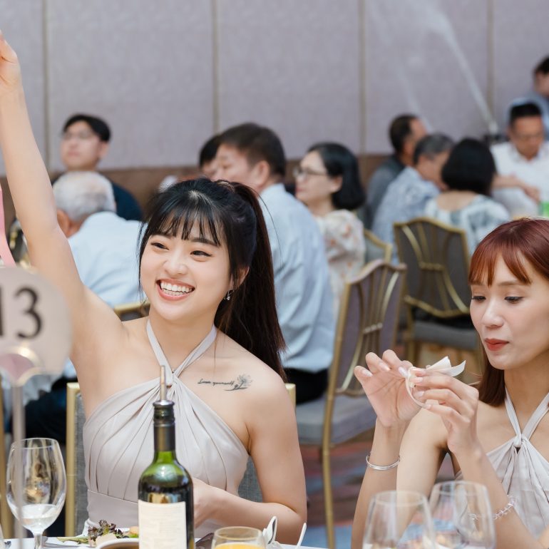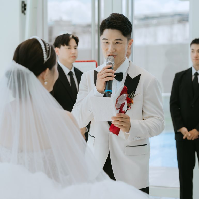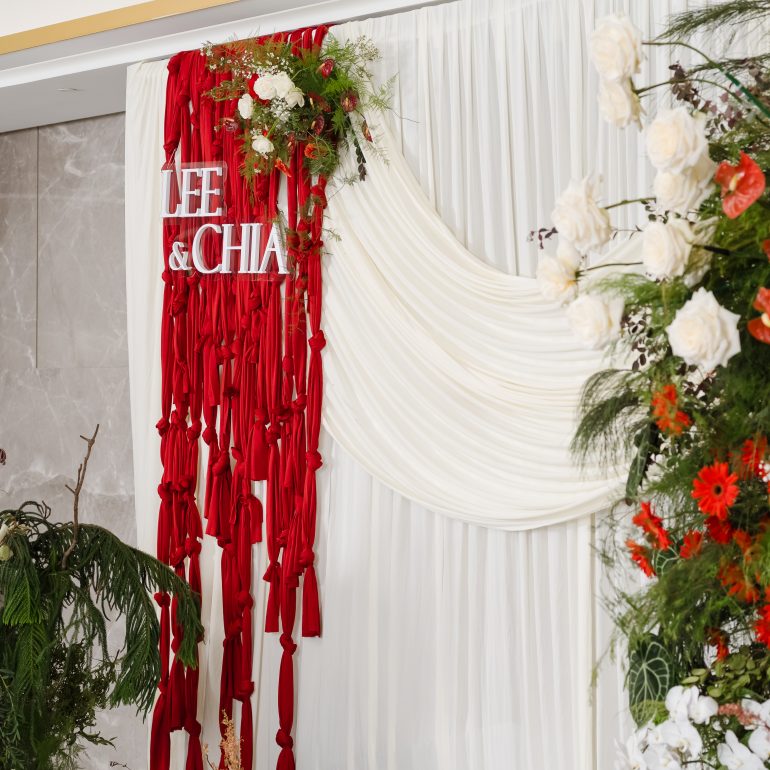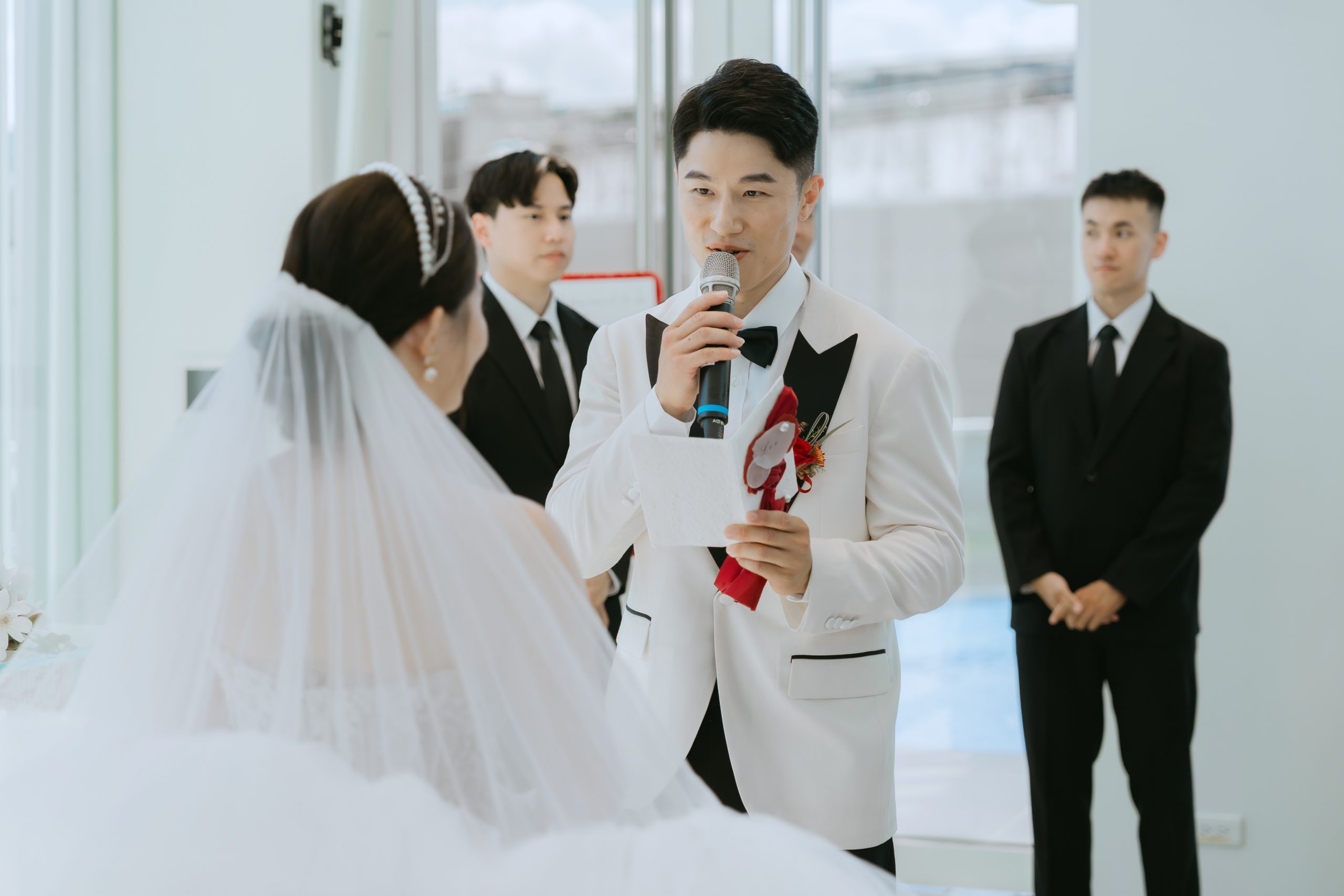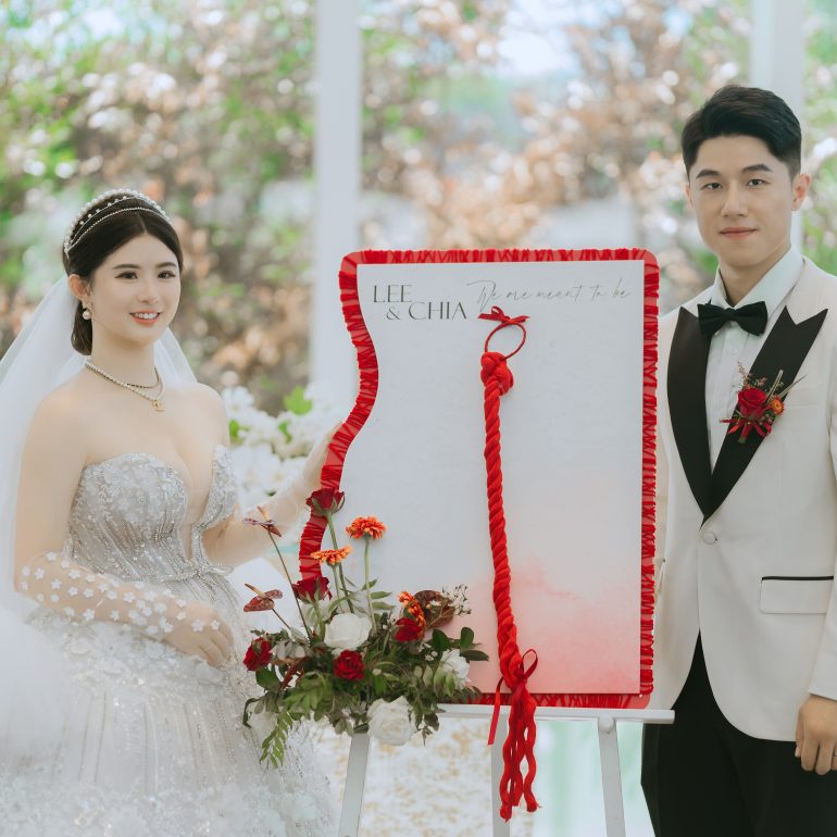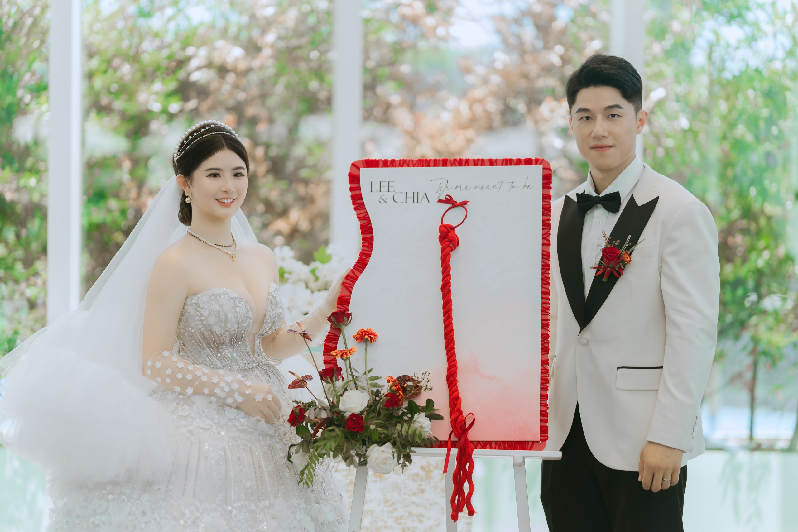 - 從迎賓時賓客繫上祝福開始,誓言被寫下,到暖戒儀式中沿著紅線傳遞,最後在成婚儀式中繫成一結,讓兩條原本分開的軌跡,正式走向彼此。