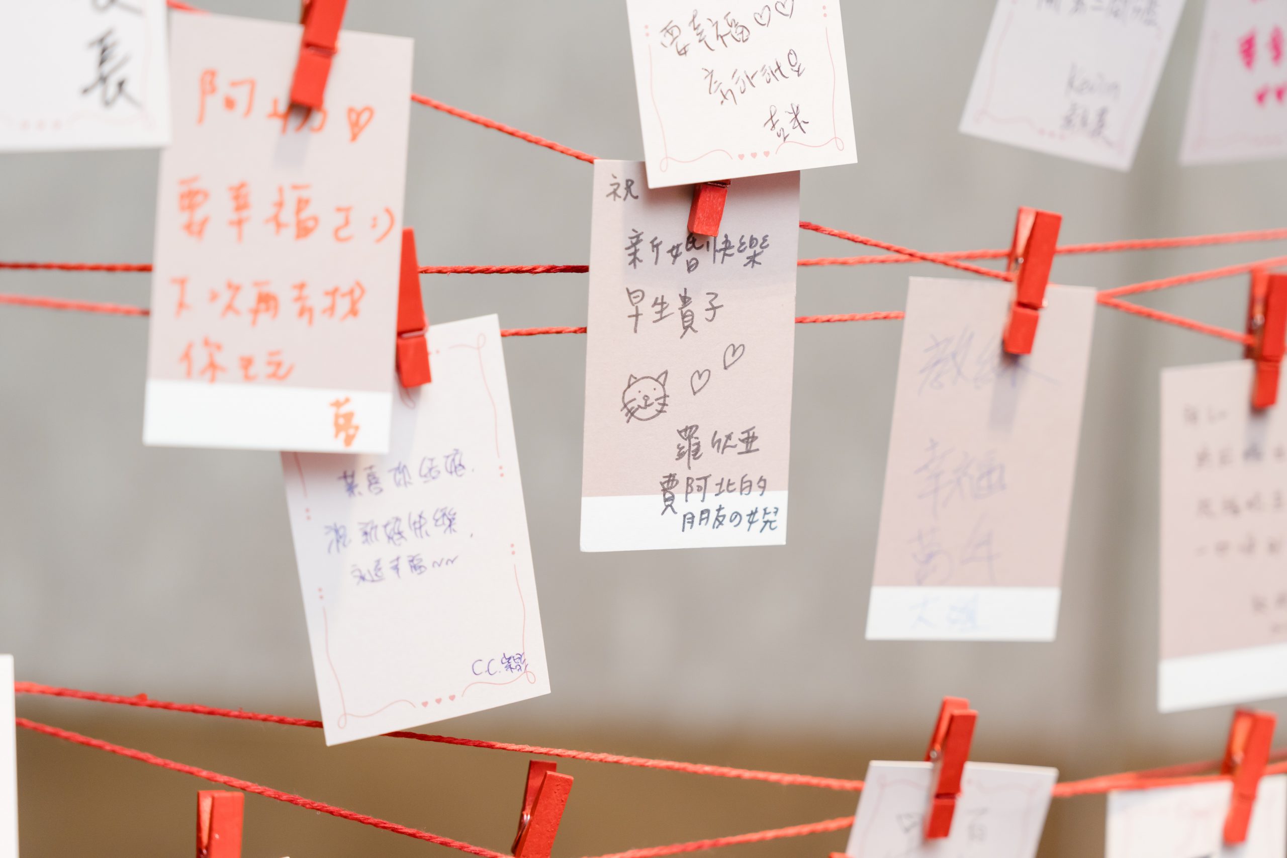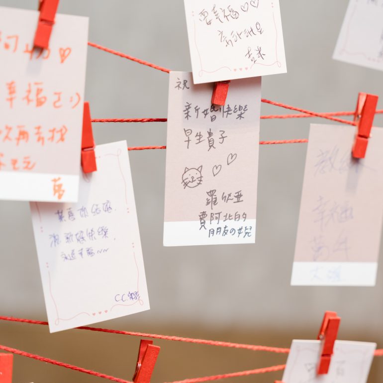 迎賓時,賓客寫下祝福,親手繫在線上。
